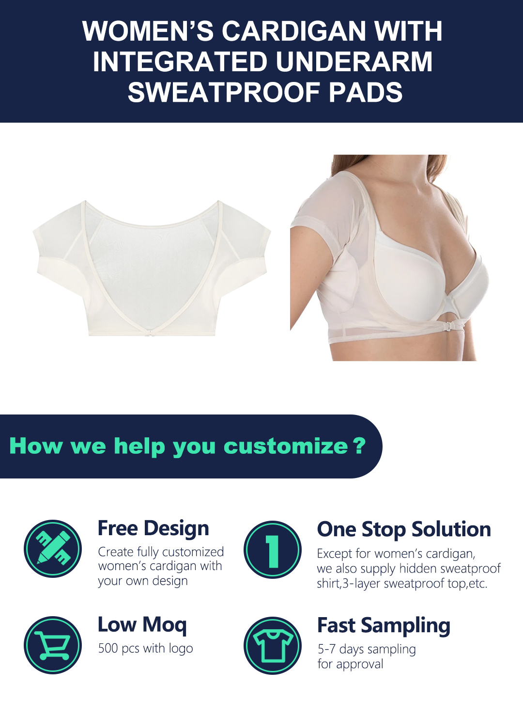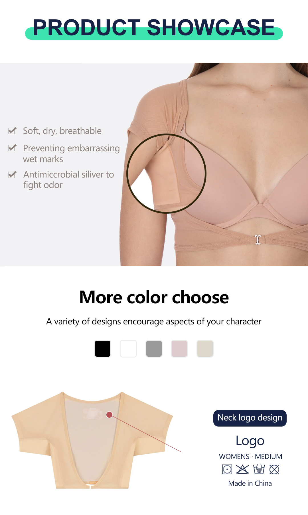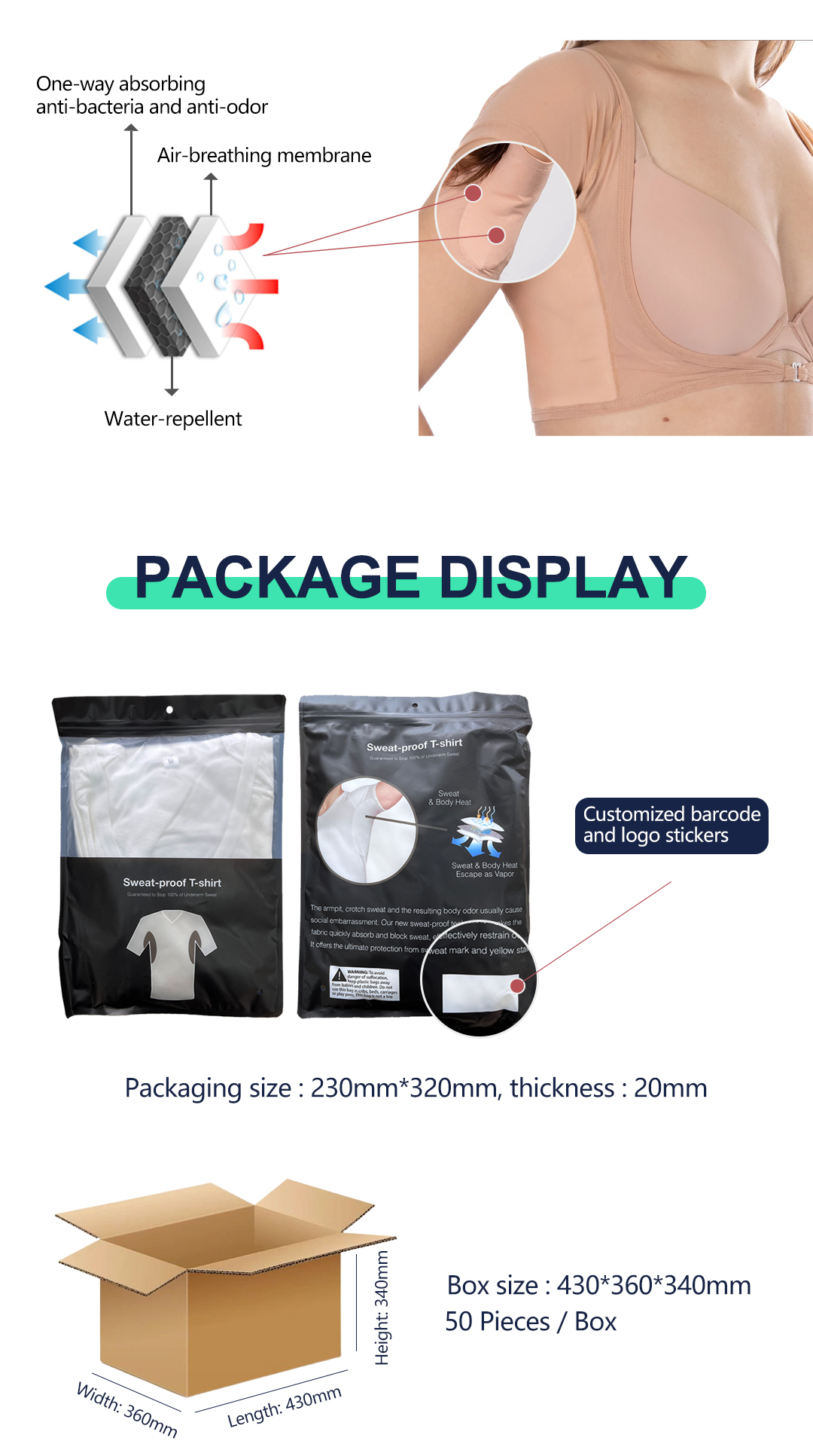 | MATERIAL | Body: 95% Lenzing modal, 5% spandex,200gsm; Armpit: 1st and 3rd layer same with body fabric. 2nd layer sweatproof fabric |